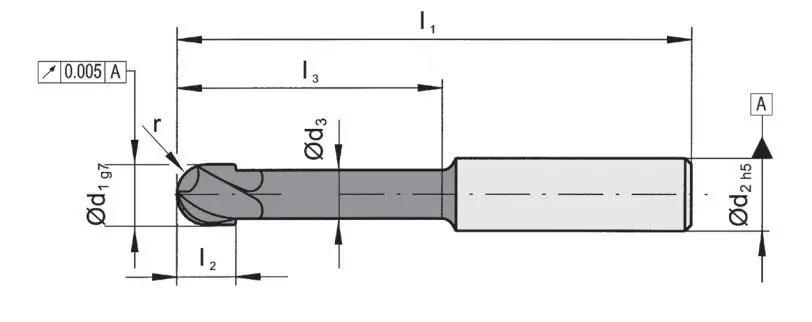 Ball nose cutters or ball end mills lower row in image are similar. The dimensions of the components are listed in Table 1. Cutting edges are only on a top.